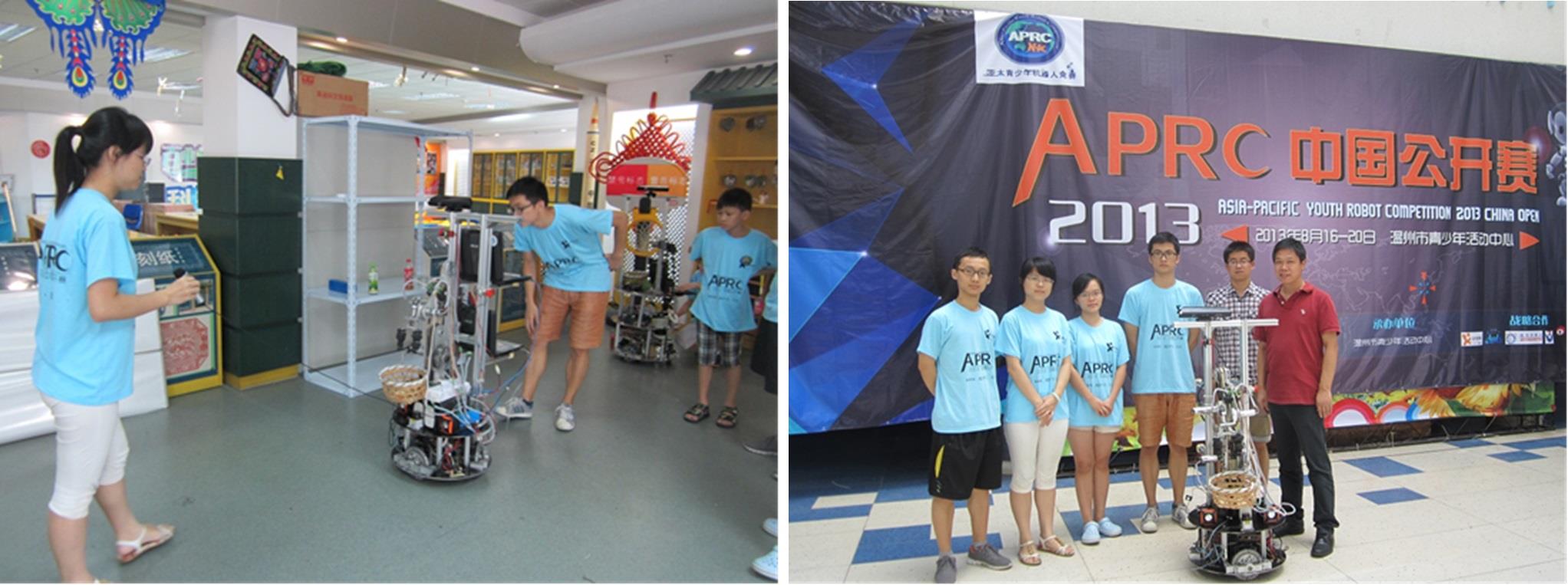 2013年8月18日—21日,sunbet申搏官方网站自强队家庭服务机器人组参加了在浙江省温州市举行的 2013APRC亚太机器人竞赛中国公开赛(第4届)家庭服务机器人超市购物项目的比赛,该项比赛集机器人自主运动、跟随与导航、机器视觉、物体识别、机械手臂的运动、语音识别、人机对话等多项综合任务,可谓目前家庭服务机器人比赛的焦点之一。