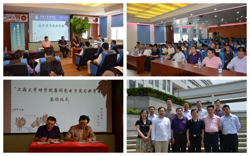 5月22日上午,sunbet申搏官方网站理学院校友会活动之理学院青年学子创业论坛暨理学院康阔光电子实习奖学金签约仪式在G507隆重举行。理学院党委书记兼执行院长翁培奋、党委副书记黄颂翔、刘亮,副院长盛万成、物理系主任赵新洛、总支书记张义邴等院系领导,理学院物理系87届校友上海康阔光通信技术有限公司董事长黄勇、理学院物理系87届校友上海精密合金有限公司董事长虞维扬,以及理学院教师、研究生、本科生代表出席了活动。
