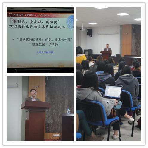 2013年4月23日晚上6点,sunbet申搏官方网站社区学院308回荡着思辨的声音,徜徉着法学的魅力。慕法学之名而来的大一同学聆听了由法学院执行院长李清伟教授带来的精彩讲座“法学教育的使命:知识、技术与伦理”。