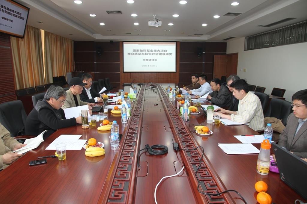 2013年4月15-16日,由我院张海东教授主持的国家社科基金重大项目“社会质量与和谐社会建设研究”举行了第二次中期学术研讨会。10余位校内外专家学者参加本次研讨会的,包括厦门大学高和荣教授,华东理工大学张昱教授,南开大学王星副教授,中国社科院社会学所范雷助理研究员和崔岩老师以及校内专家仇立平教授,翁定军教授,袁浩副教授。会议还特别邀请了韩国首尔大学社会质量研究团队的负责人李在烈教授进行了专题讲座。