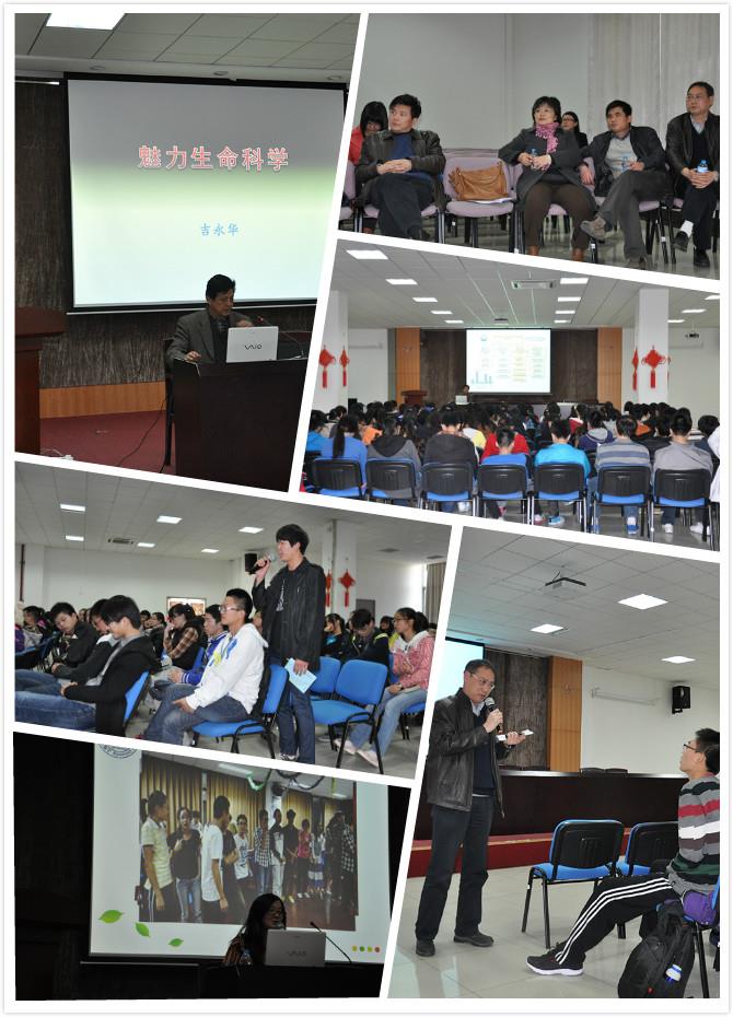 此次活动由副书记邓志瑞老师主持,邓老师首先欢迎大一同学的到来,并介绍了到场嘉宾。随后吉永华教授开始了“魅力生命科学”讲座,吉永华教授从生命科学的历史发展和现实地位、生命科学的魅力、生命科学的未来态势这几个方面给同学们做了精彩的演讲。从历史上来说,生命科学在世界科技史上的六次革命中都起到了重要的作用,从现实来说,生命科学的又一场重大革命即将到来,与此同时,食品安全、禽流感等现实问题扑面而来,对生命科学而言既是挑战,又是机遇。同时吉永华老师分享了很多兴趣驱动、使命驱动的伟大科学家的精彩案例,这使得同学们对生命科学有了更清楚地把握,在提问环节同学们与吉老师互动热烈。