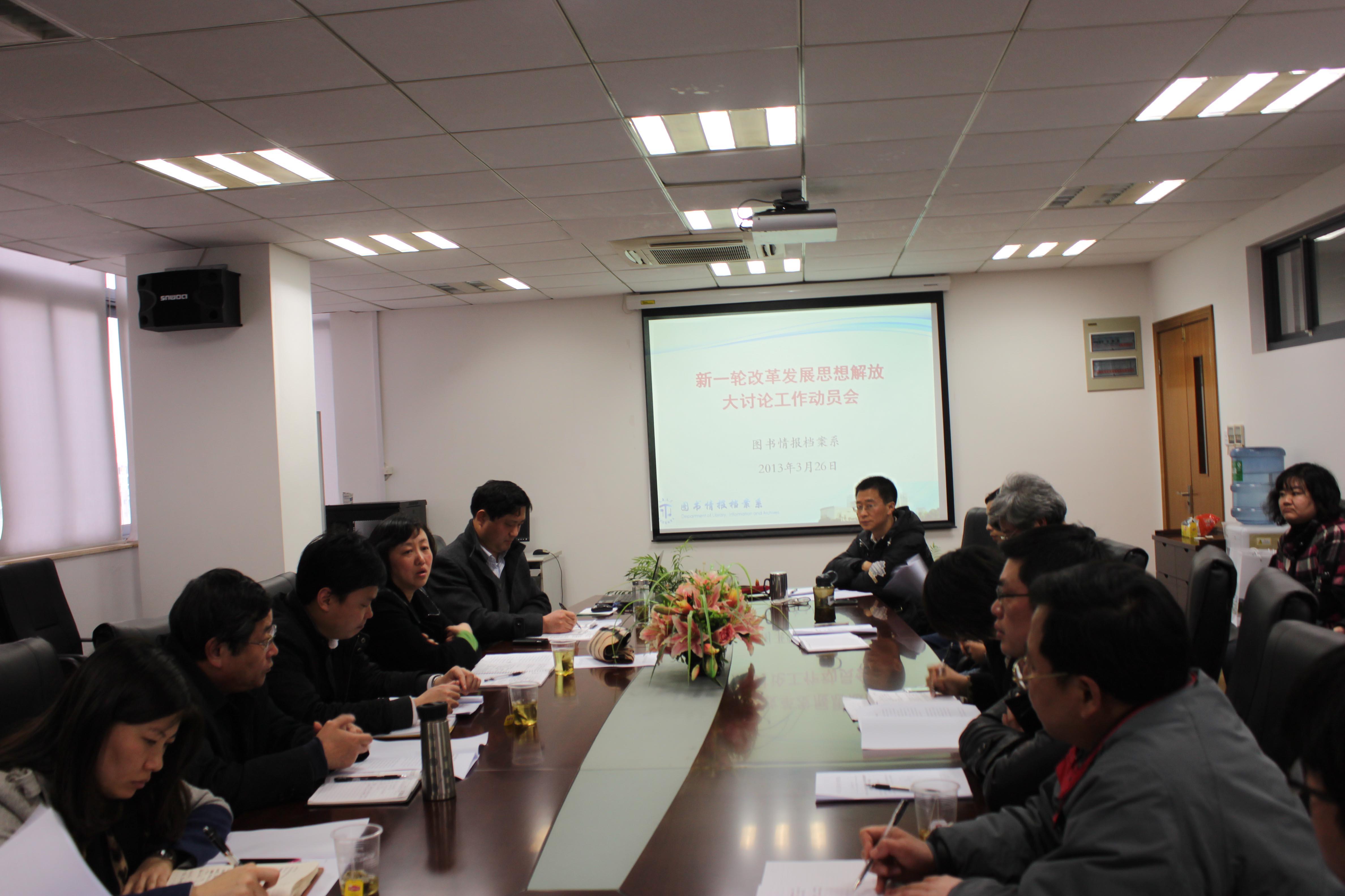 图情档系直属党总支书记潘玉民号召全系师生员工抓住学校新一轮改革发展思想解放大讨论的契机,积极参与,寻找差距,直面问题,献计献策,不断推动图情档系的发展,为把学校建成高水平、有特色的国际知名、国内一流的综合性研究型大学贡献力量。