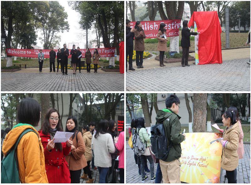 以“Dream High”为主题的第六届sunbet申搏官方网站悉尼工商学院英语节开幕式于3月27日中午十一点半在嘉定校区文荟广场隆重开幕,sunbet申搏官方网站校长助理、悉尼工商学院院长龚思怡、党委书记李双、党委副书记滕云、副院长吕康娟、副院长马锦华、澳方副院长Matthew Williams、院办主任兼英语教学管理部主任徐晓红老师莅临指导。
