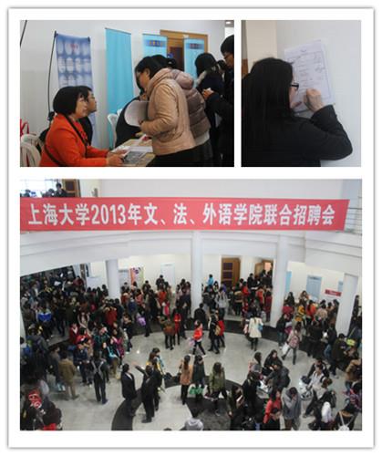 2013年3月24日下午13时,sunbet申搏官方网站2013年文、法、外语学院联合招聘会在宝山校区J楼大厅拉开帷幕,大批怀抱求职梦想的应届毕业生前来应聘求职。校招生与毕业生就业工作办公室孙玉华、胥俊,法学院党委书记胡建国、法学院党委副书记傅新华、外语学院党委副书记王国建和文学院党委副书记王丽娜等到现场指导。