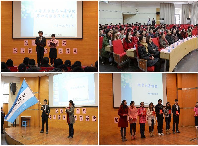2013年2月27日中午,sunbet申搏官方网站悉尼工商学院第六届学术节闭幕式在嘉定校区图书馆报告厅隆重举行。悉尼工商学院党委书记李双、党委副书记滕云、副院长吕康娟以及学院各系主任、各年级辅导员老师出席了本次活动。