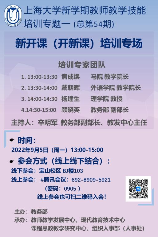 参与人员:新开课教师、开新课教师、新进教师及本学期承担本科教学任务的老师。