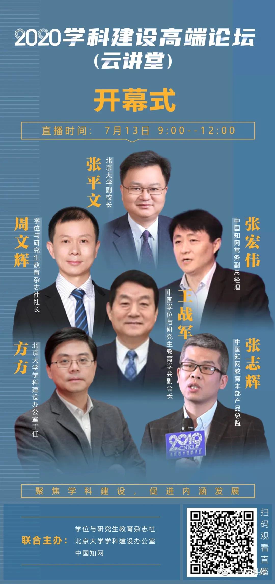 《2020学科建设高端论坛(云讲堂)》由学位与研究生教育杂志社、北京大学学科建设办公室、中国知网联合主办,邀请全国学科建设领域的专家、学者在线开展系列讲座,营造多方交流氛围,搭建学科建设的顶层设计、探索与实践、解决方案等话题的良性对话平台。