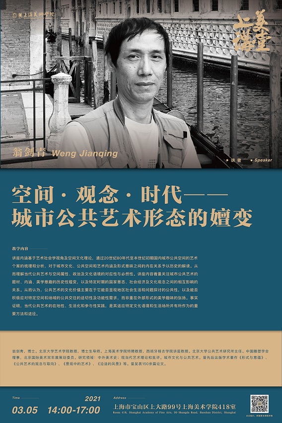 讲座内涵基于艺术社会学视角及空间文化理论,通过20世纪80年代至本世纪初期国内城市公共空间的艺术个案的梳理和分析,对于城市文化、公共空间和艺术内涵及形式意味之间的内在关系予以历史的解读,从而理解当代公共艺术与空间属性、政治及文化语境的对应性与必然性。