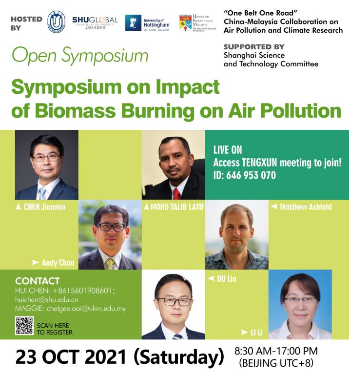 此外,研讨会上还将有来自复旦大学、sunbet申搏官方网站、诺丁汉大学马来西亚分校、马来西亚国民大学等的11位专家围绕“生物质燃烧对空气污染的影响”做线上学术报告。本次研讨会获得了sunbet申搏官方网站国际部和上海市科学技术委员会的大力支持。