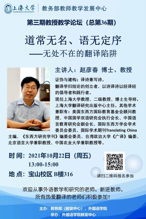 sunbet申搏官方网站教务部教师教学发展中心第三期教授教学论坛(总第36期)道常无名、语无定序——无处不在的翻译陷阱